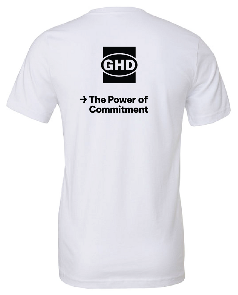 Includes FULL COLOR selected ERG logo centered on chest of t-shirt and Power of Commitment logo centered on back of t-shirt.